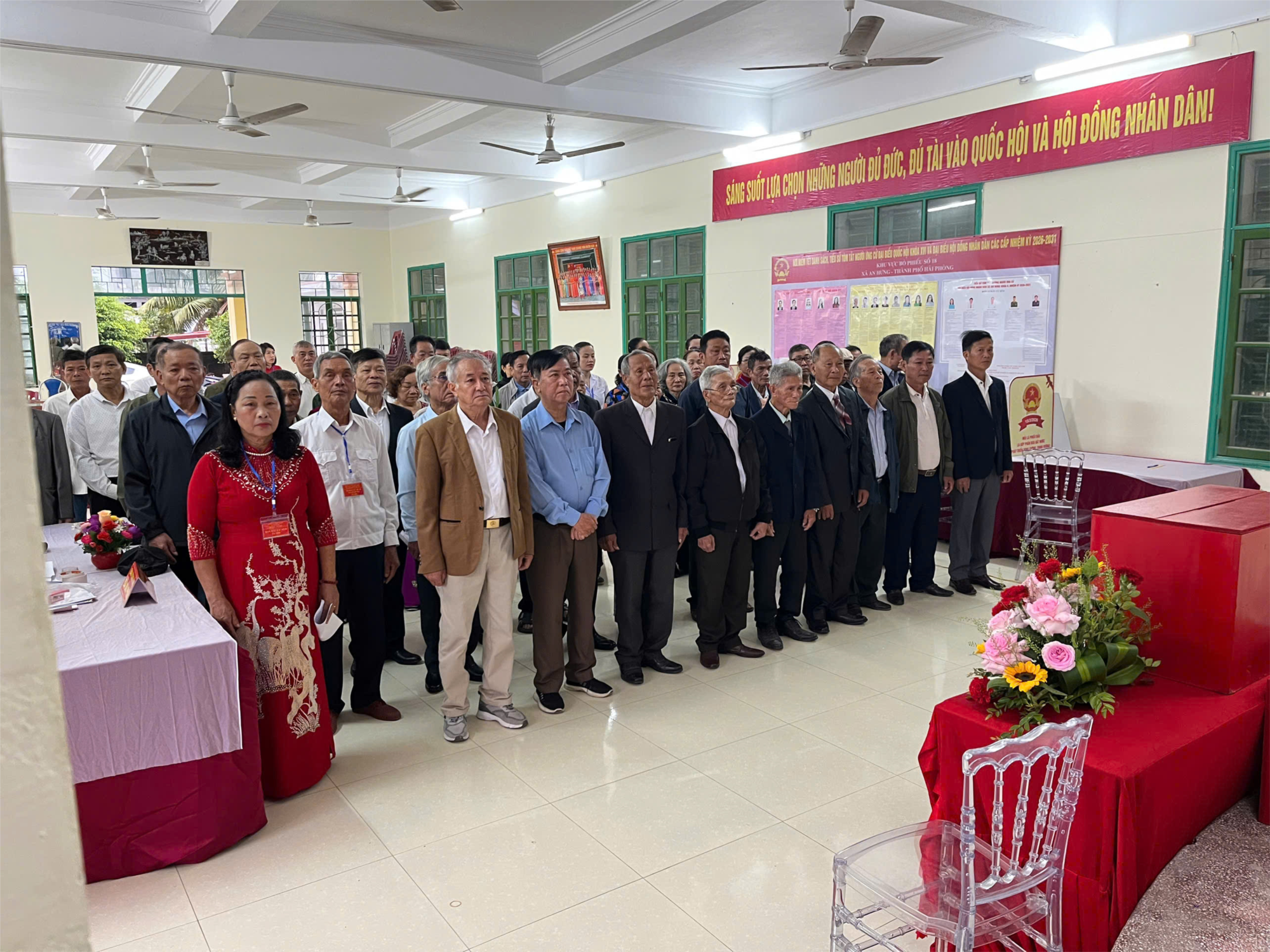 Trước khi cử tri đầu tiên bỏ phiếu vào hòm, tổ kiểm phiếu và đại diện các lãnh đạo xã, thôn long trọng tổ chức chào cờ. Bà Phạm Thị Chinh - Bí thư Chi bộ thôn Phương Hạ đã khai mạc buổi bầu cử trong không khí trang nghiêm.