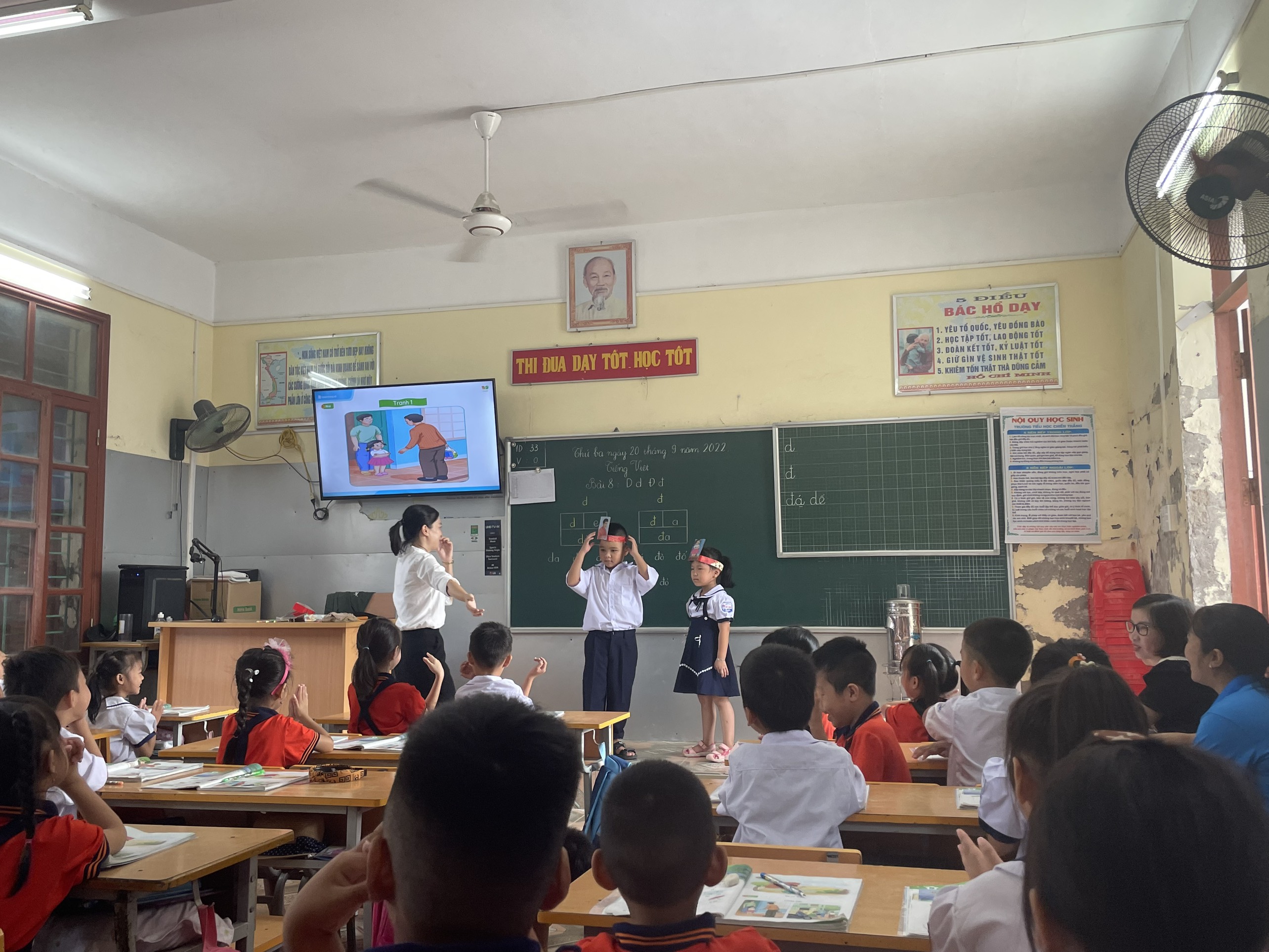 Tuy đầu năm học còn nhiều bỡ ngỡ nhưng các bạn học sinh lớp 1D rất mạnh dạn khi phát biểu và rất hào hứng tham gia các hoạt động trong tiết học. Đặc biệt các bạn thể hiện rất tốt trong phần luyện nói qua việc đóng vai các nhân vật để giải quyết tình huống. Mong rằng các bạn sẽ giữ vững tinh thần ham học hỏi và thái độ học tập tích cực như vậy để chinh phục nhiều kiến thức và rèn luyện thêm các kĩ năng cho bản thân. Qua đó các bạn sẽ đạt được nhiều kết quả tốt trong học tập và rèn luyện.