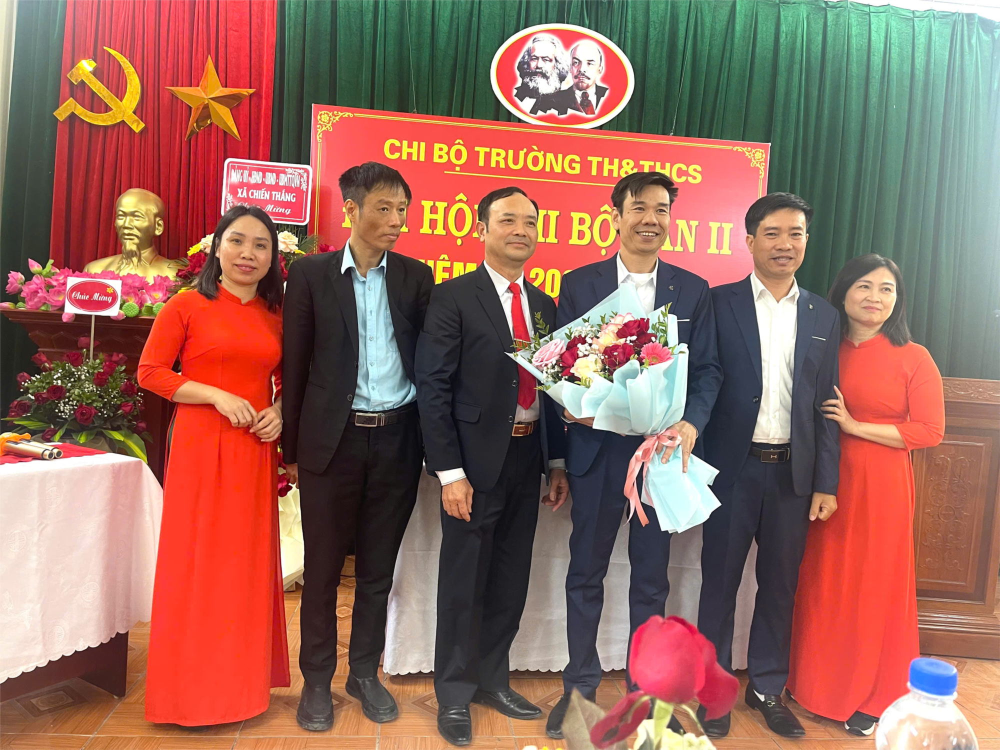 Đại hội cũng được nghe phát biểu chỉ đạo của đồng chí Phạm Văn Đức - Phó Bí thư Thường trực Đảng ủy, chủ tịch HĐND xã Chiến Thắng. Đồng chí đánh giá cao công tác chuẩn bị đại hội của Chi bộ, đồng thời ghi nhận và biểu dương những thành tích mà Chi bộ đã đạt được trong nhiệm kỳ qua. Đồng thời, mong muốn Chi bộ thực hiện tốt công tác tạo nguồn và phát triển đảng viên của chi bộ trong những năm tiếp theo. Nâng cao vai trò, trách nhiệm trong công tác tác lãnh đạo, chỉ đạo thực hiện nhiệm vụ của từng đảng viên trong chi bộ. Tiếp tục phát huy và nâng cao năng lực chiến đấu của tổ chức đảng, lãnh đạo nhà trường và tập thể giáo viên tiếp tục gặt hái và đạt được những thành tích cao hơn góp phần cùng với địa phương duy trì, giữ vững và tiến tới xây dựng nếp sống mới cao hơn.